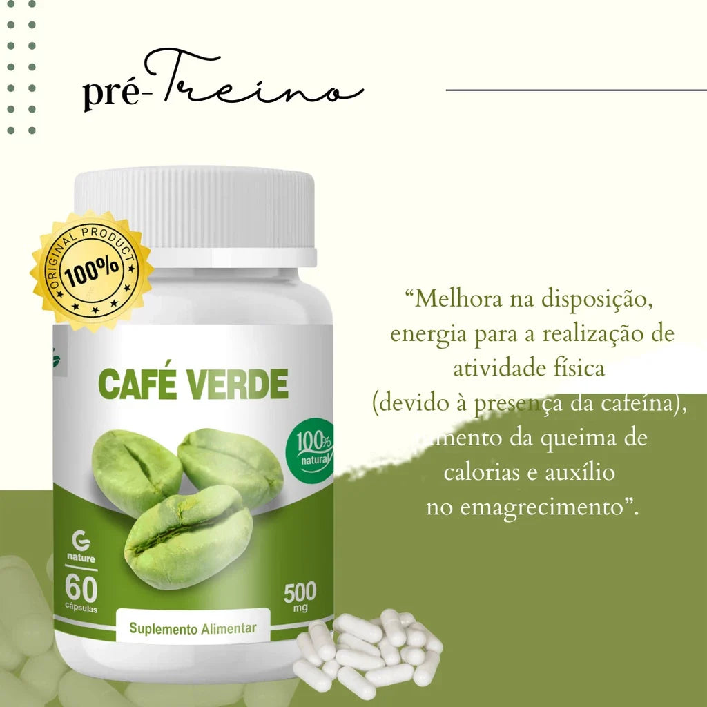 Desperte sua melhor versão com o Café Verde em Cápsulas! Rico em ácido clorogênico, este superalimento natural acelera o metabolismo, auxilia na queima de gordura, reduz o apetite e ainda promove mais disposição no dia a dia. Ideal para quem busca emagrecer com saúde, sem abrir mão da energia e foco.