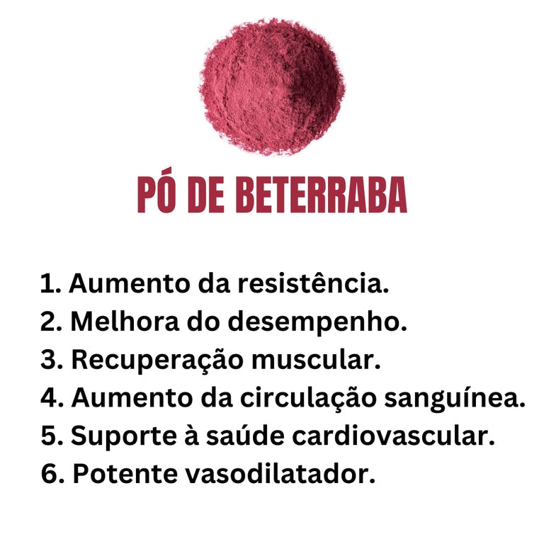 Fonte natural de nitratos, ajuda a melhorar a circulação, reduzir a pressão arterial e aumentar a resistência física.